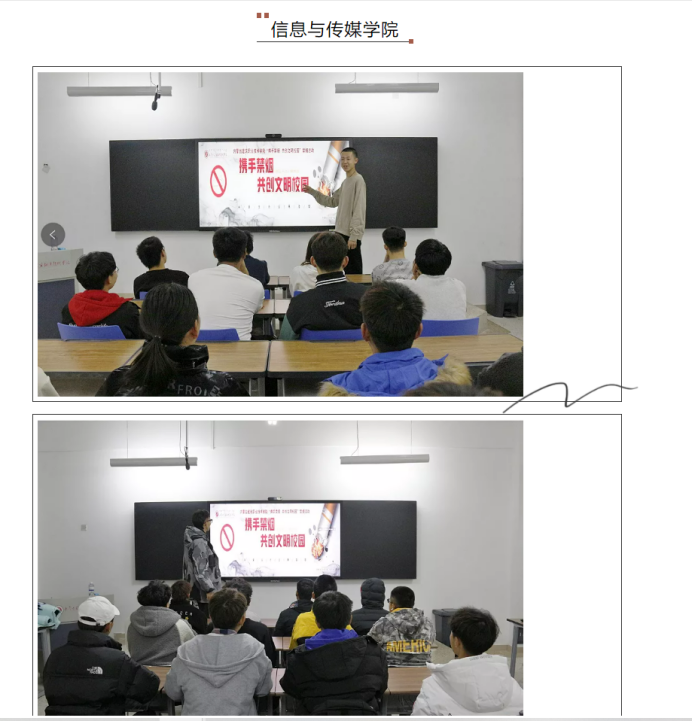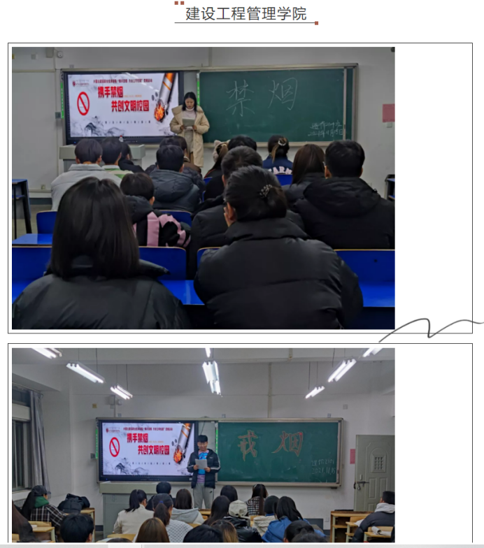 建设工程管理学院以“携手禁烟 共创文明校园”为主题进行了板报绘制、宣讲等宣传活动。