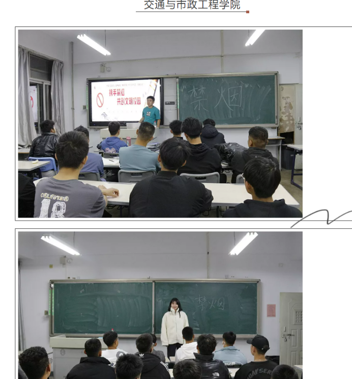 交通与市政工程学院举行了禁烟宣讲活动,并以“携手禁烟 共创文明校园”为主题进行了板报绘制。